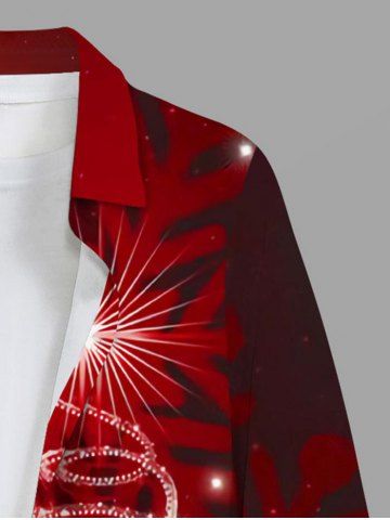 Plus Size Glitter Stars Christmas Tree Ombre Snowflake Print Button Long Sleeves Shirt For Men - Red - 6xl