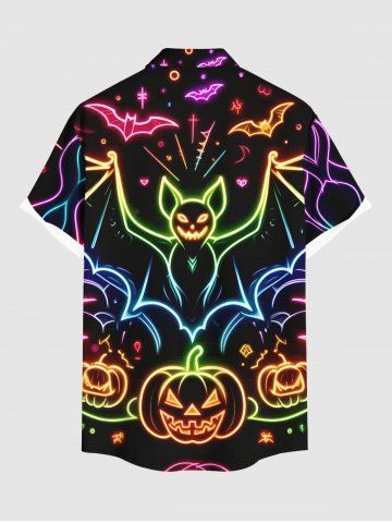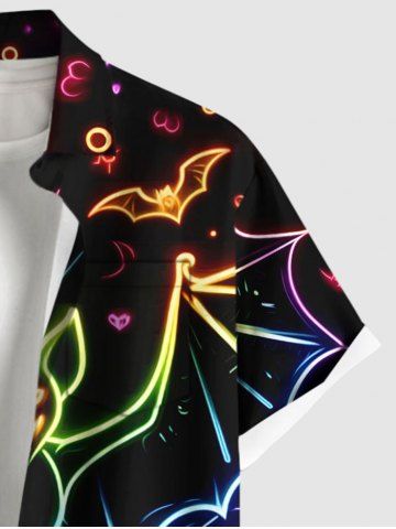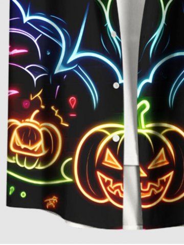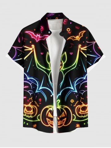 Plus Size Halloween Bat Pumpkin Moon Heart Print Buttons Pocket Shirt For Men - Black - L
