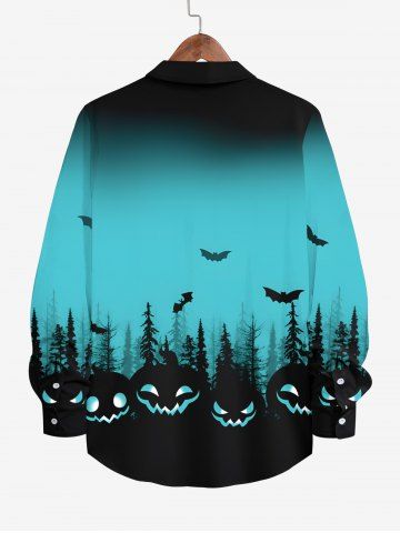 Men > Plus Size Halloween Bat Pumpkin Tree Ombre Colorblock Print Buttons Long Sleeve Shirt For Men