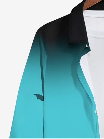 Plus Size Halloween Bat Pumpkin Tree Ombre Colorblock Print Buttons Long Sleeve Shirt For Men - Multi-a - 8xl
