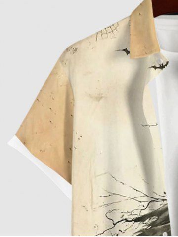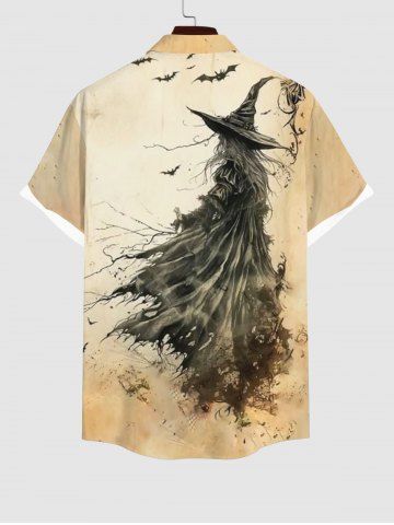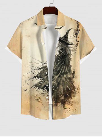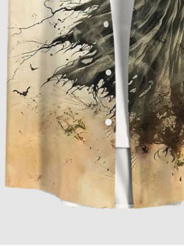 Plus Size Halloween Bat Scarecrow Wizard Print Buttons Pocket Shirt For Men - Light Coffee - L