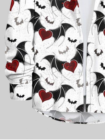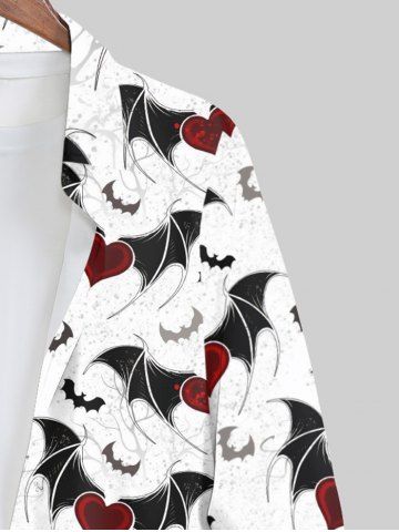 Plus Size Halloween Costume Bat Heart Print Buttons Long Sleeve Shirt For Men - White - 7xl
