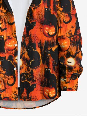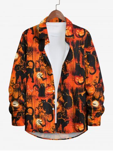 Men > Plus Size Halloween Costume Cat Pumpkin Bat Print Buttons Long Sleeve Shirt For Men