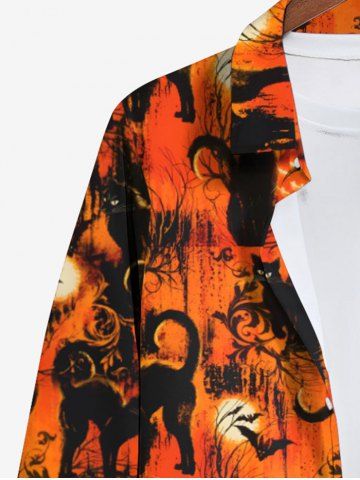 Plus Size Halloween Costume Cat Pumpkin Bat Print Buttons Long Sleeve Shirt For Men - Multi-a - 8xl