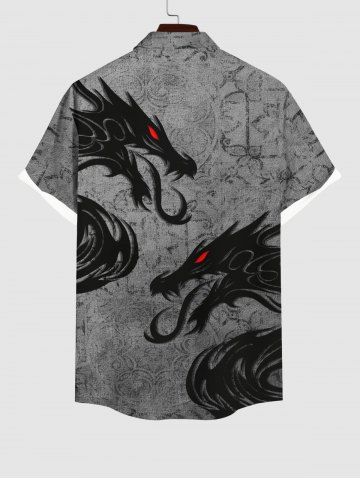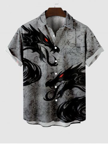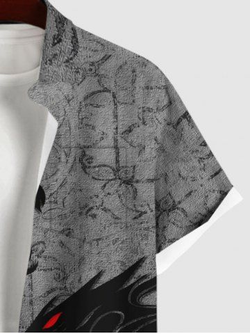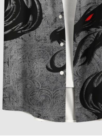 Plus Size Halloween Costume Dragon Floral Pattern Print Buttons Pocket Shirt For Men - Dark Gray - 4xl