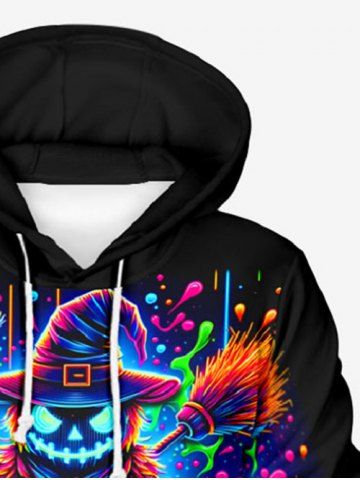 Men > Plus Size Halloween Costume Hat Pumpkin Wizard Paint Splatter Print Drawstring Hoodie