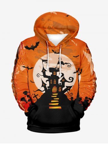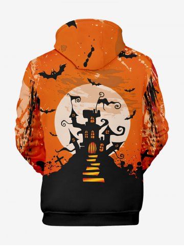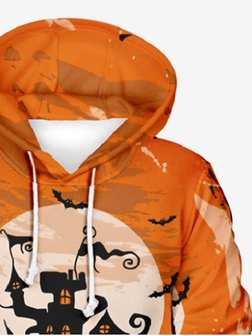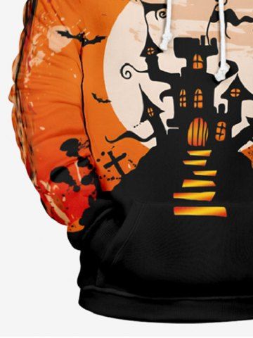 Plus Size Halloween Costume Moon Castle Bat Cross Colorblock Print Hoodie For Men - Dark Orange - 6xl