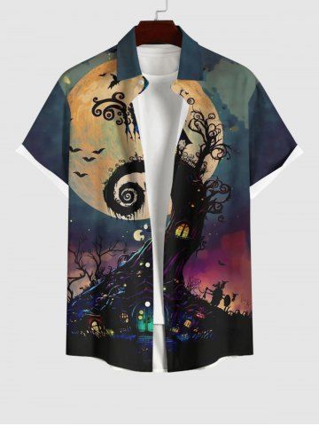 Plus Size Halloween Costume Moon Tree House Bat Print Buttons Pocket Shirt For Men - Multi-a - M