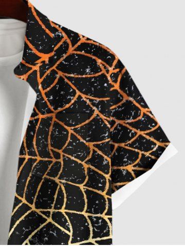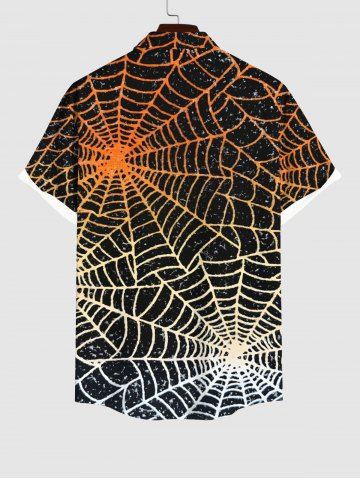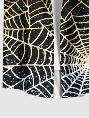 Plus Size Halloween Costume Ombre Spider Web Print Buttons Pocket Shirt For Men - Black - Xl