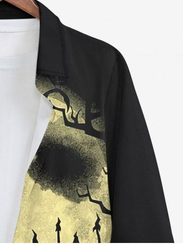 Plus Size Halloween Costume Pumpkin Face Moon Bat Print Buttons Long Sleeve Shirt For Men - Black - 7xl