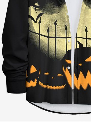 Plus Size Halloween Costume Pumpkin Face Moon Bat Print Buttons Long Sleeve Shirt For Men - Black - 8xl