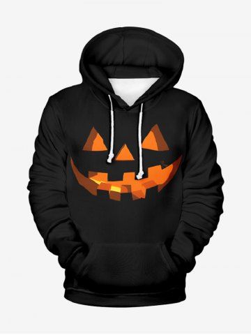 Men > Plus Size Halloween Costume Pumpkin Face Print Pocket Drawstring Hoodie
