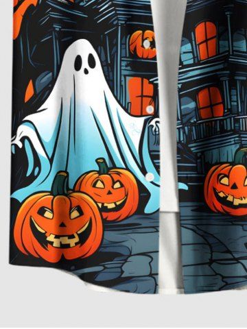 Men > Plus Size Halloween Costume Pumpkin Ghost Bat Castle Print Buttons Pocket Shirt For Men