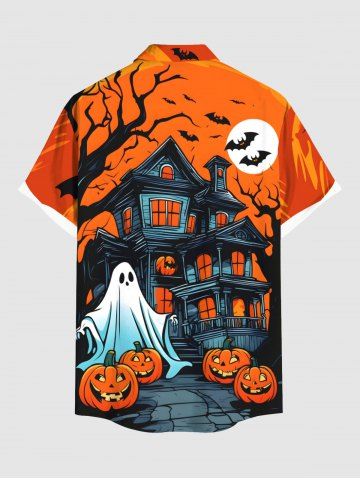 Men > Plus Size Halloween Costume Pumpkin Ghost Bat Castle Print Buttons Pocket Shirt For Men