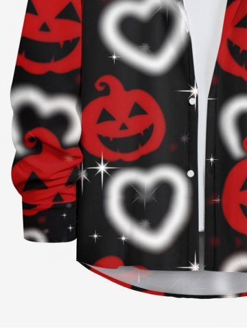 Men > Plus Size Halloween Costume Pumpkin Heart Star Glitter 3D Print Buttons Long Sleeve Shirt For Men