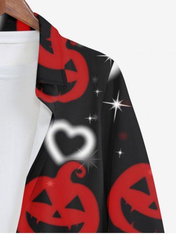 Plus Size Halloween Costume Pumpkin Heart Star Glitter 3D Print Buttons Long Sleeve Shirt For Men - Multi-a - 8xl