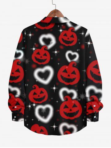 Men > Plus Size Halloween Costume Pumpkin Heart Star Glitter 3D Print Buttons Long Sleeve Shirt For Men