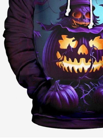 Plus Size Halloween Costume Pumpkin Lantern Hat Skull Tree Print Hoodie For Men - Black - 7xl