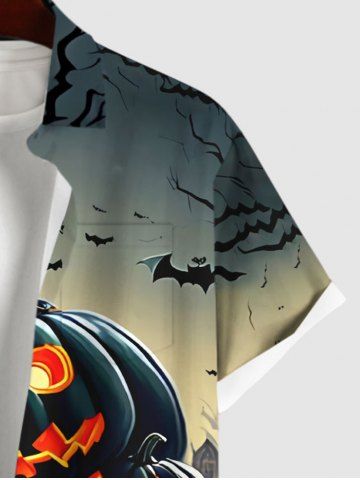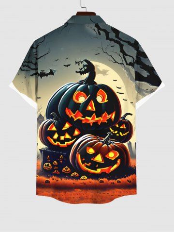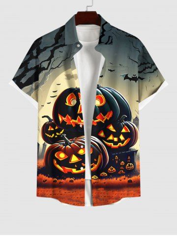 Plus Size Halloween Costume Pumpkin Latern Bat Moon Tree Print Buttons Pocket Shirt For Men - Multi-a - S