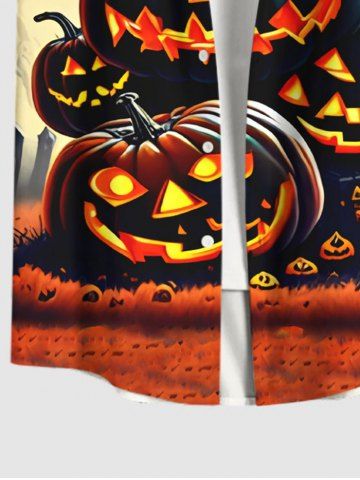 Men > Plus Size Halloween Costume Pumpkin Latern Bat Moon Tree Print Buttons Pocket Shirt For Men