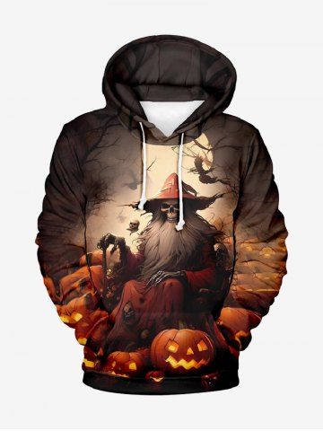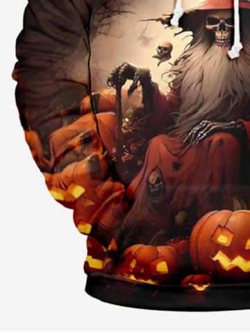 Men > Plus Size Halloween Costume Pumpkin Latern Moon Skull Scarecrow Print Pocket Drawstring Hoodie