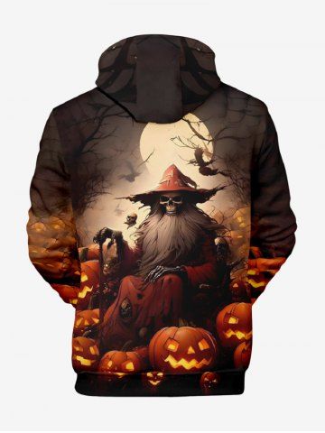 Plus Size Halloween Costume Pumpkin Latern Moon Skull Scarecrow Print Pocket Drawstring Hoodie - Black - 7xl