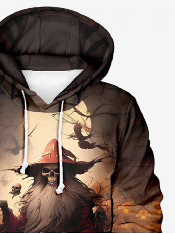 Men > Plus Size Halloween Costume Pumpkin Latern Moon Skull Scarecrow Print Pocket Drawstring Hoodie