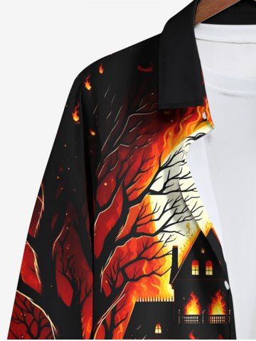 Plus Size Halloween Costume Pumpkin Moon Fire Flame Tree Print Buttons Long Sleeve Shirt For Men - Multi-a - 8xl