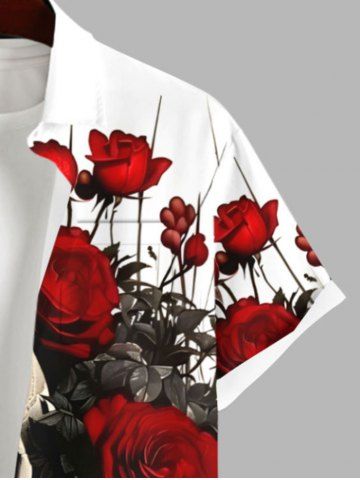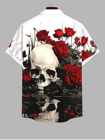 Men > Plus Size Halloween Costume Rose Flower Skull Print Buttons Pocket Shirt For Men