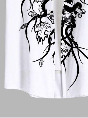 Plus Size Halloween Costume Skull Flowers Leaf Print Buttons Pocket Shirt For Men - White - 2xl