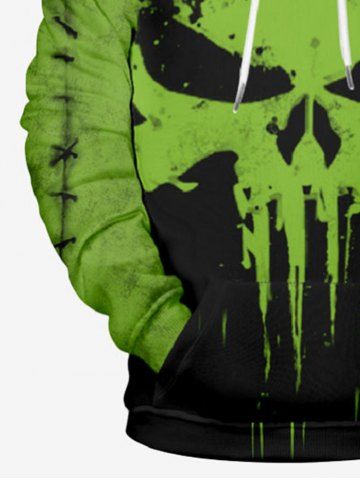 Plus Size Halloween Costume Skull Ripped Stitching Paint Drop 3D Print Pocket Drawstring Hoodie For Men - Green - 5xl