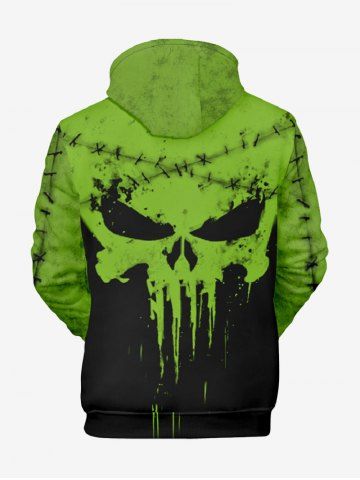Plus Size Halloween Costume Skull Ripped Stitching Paint Drop 3D Print Pocket Drawstring Hoodie For Men - Green - 7xl