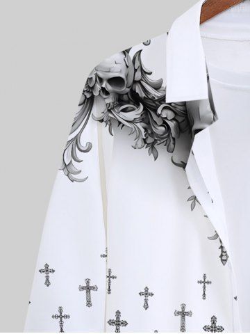 Plus Size Halloween Costume Skulls Cross Fence Print Buttons Long Sleeve Shirt For Men - White - 8xl