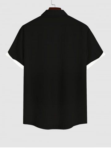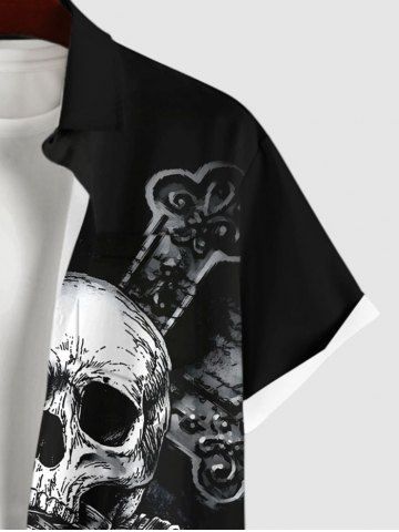 Plus Size Halloween Costume Skulls Cross Print Buttons Pocket Shirt For Men - Black - S