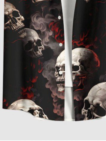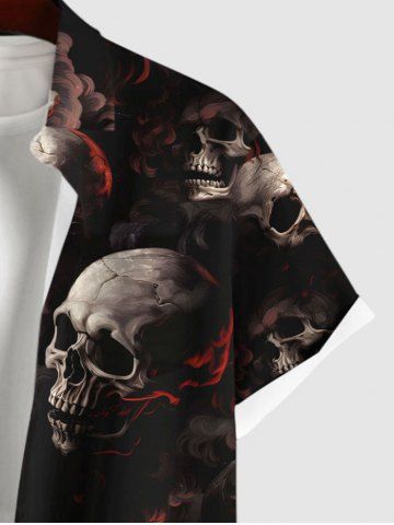 Plus Size Halloween Costume Skulls Fog Print Buttons Pocket Shirt For Men - Black - 3xl