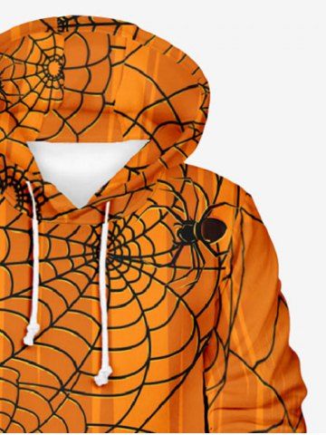 Plus Size Halloween Costume Spider Web Print Pocket Drawstring Hoodie For Men - Orange - 5xl