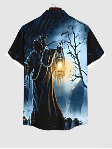 Men > Plus Size Halloween Costume Tree Wizard Tomb Lantern Print Buttons Pocket Shirt For Men