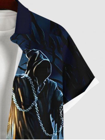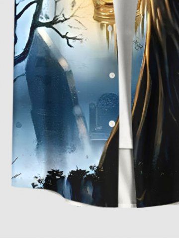 Men > Plus Size Halloween Costume Tree Wizard Tomb Lantern Print Buttons Pocket Shirt For Men