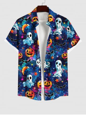 Men > Plus Size Halloween Galaxy Ghost Pumpkin Moon Star Bat Print Buttons Pocket Shirt For Men