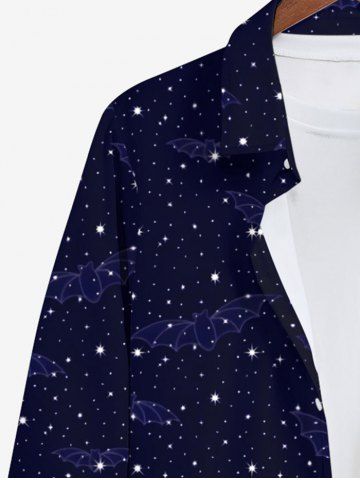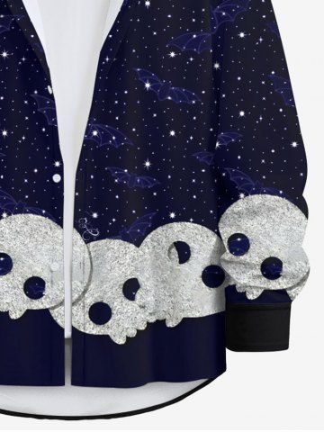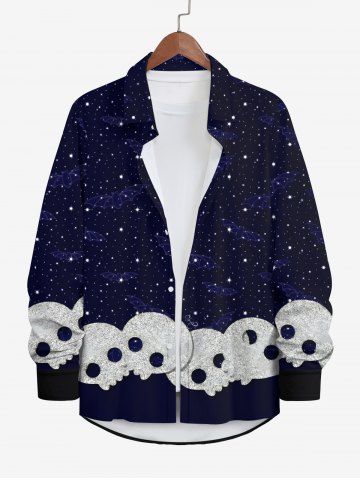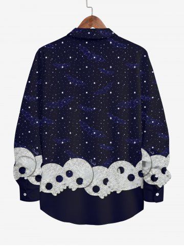 Plus Size Halloween Galaxy Star Glitter Skulls 3D Printe Long Sleeve Buttons Shirt For Men - Midnight Blue - 7xl