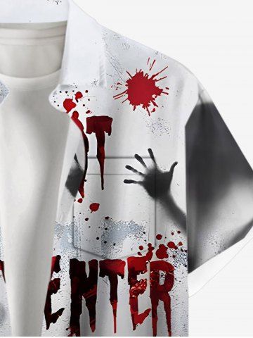 Plus Size Halloween Ghost Hair Hands Blood Splatter Print Buttons Pocket Shirt For Men - Gray - Xl