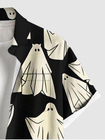 Plus Size Halloween Ghost Print Buttons Pocket Shirt For Men - Black - S