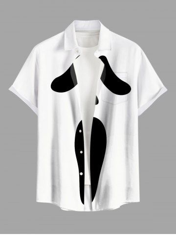 Plus Size Halloween Ghost Print Buttons Pocket Shirt For Men - White - Xl