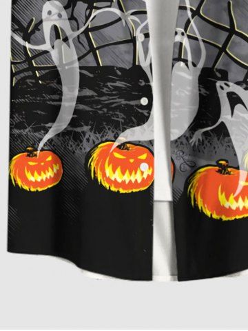 Men > Plus Size Halloween Ghost Pumpkin Moon Fence Tree Castle Print Buttons Pocket Shirt For Men