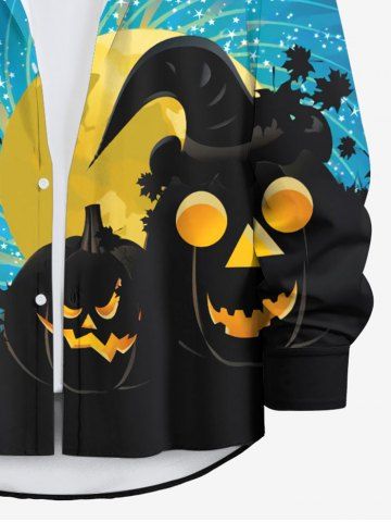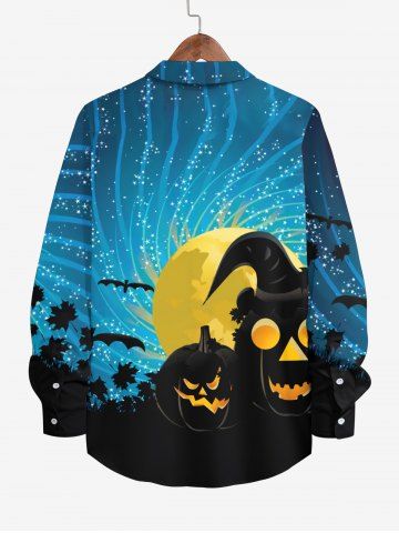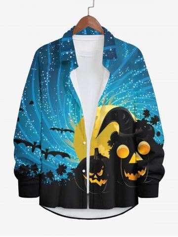 Men > Plus Size Halloween Hat Pumpkin Bat Moon Star Maple Leaf Print Buttons Long Sleeve Shirt For Men