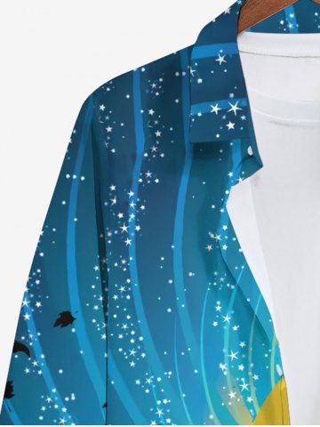 Plus Size Halloween Hat Pumpkin Bat Moon Star Maple Leaf Print Buttons Long Sleeve Shirt For Men - Multi-a - 8xl