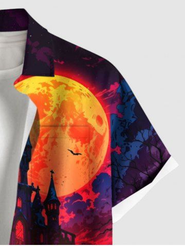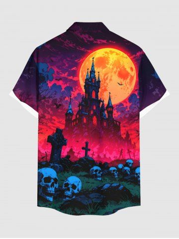 Men > Plus Size Halloween Moon Castle Skulls Cross Bat Print Buttons Pocket Shirt For Men