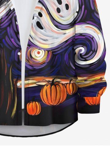 Men > Plus Size Halloween Oil Painting Ghost Pumpkin Print Buttons Long Sleeve Shirt For Men