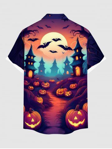 Men > Plus Size Halloween Pumpkin Bat Moon Castle Print Buttons Pocket Shirt For Men