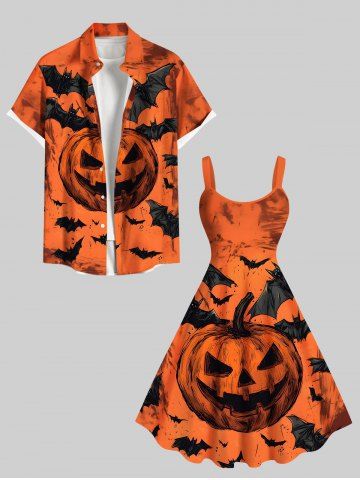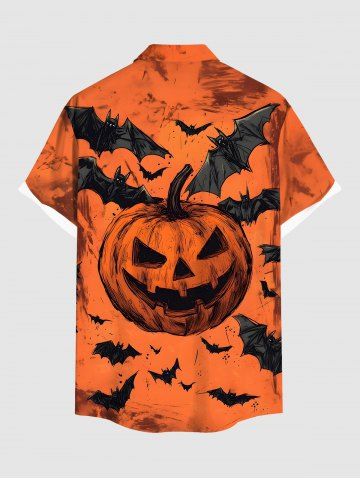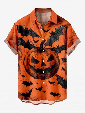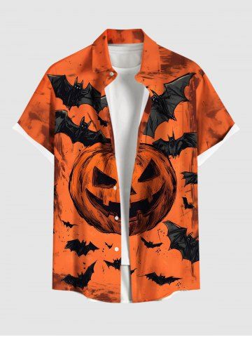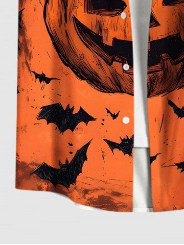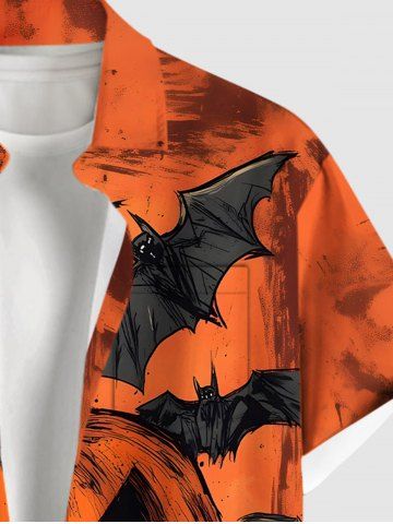 Men > Plus Size Halloween Pumpkin Bat Print Buttons Pocket Shirt For Men
